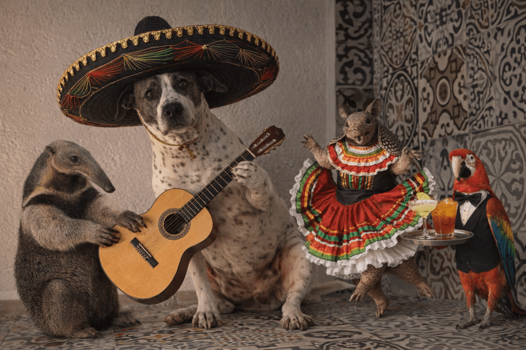 When the parents are away their pets will play. I try to infuse a little humor into life for those who are missing their family members. Here is my latest with Ocho.